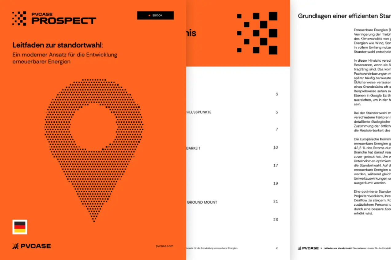 Laden Sie den Leitfaden herunter und erweitern Sie Ihr Portfolio mit einem umfassenden Tool für die Frühphase der Solarprojektentwicklung: PVcase Prospect